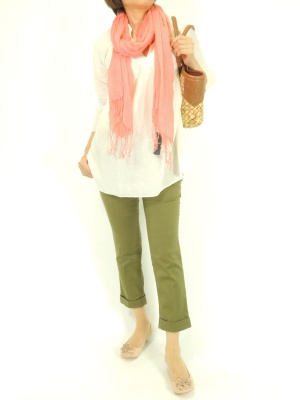 ゆったりしたナチュラルなブラウスはシルク混紡の上質素材。デイリーカジュアルにはさりげない上質さを取り入れたいですね!フェミニン度60%、アクティブ度40%。