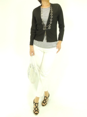 夏のモノトーンコーデはコンパクトなジャケットで辛口に仕上げて!ボトムを白にすると軽やかな印象です!スタイリッシュ度90%、アクティブ度10%。