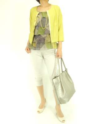 ティアードブラウスはジャケットを羽織って甘さを調節。タイトなパンツを合わせれば甘辛コーデの完成です!スタイリッシュ度60%、フェミニン度40%。