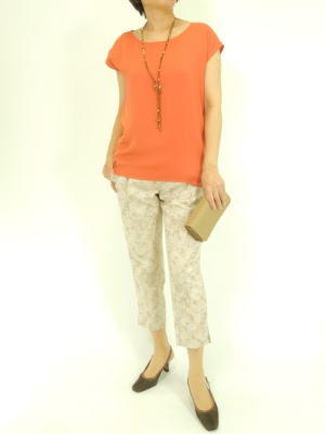 一癖デザインのアイテムはシンプルコーデがおススメ。ブラウスは後姿に注目です!エレガンス度70%、スタイリッシュ度30%。