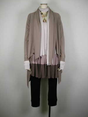 ドレープカーデェはこの春お助けマン。体のラインがうまく隠れて 尚、シルエットも綺麗でカッコ良く決まります。ストレッチパンツで活動的に!スタイリッシュ度80%、アクティブ度20%。