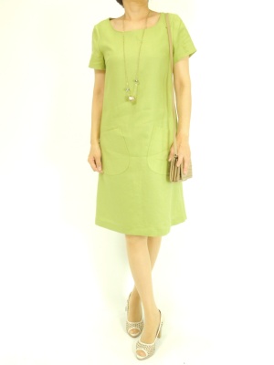 キレイ色のシンプルワンピは小物を控えめにして色を際立たせて!エレガンス度70%、フェミニン度30%。