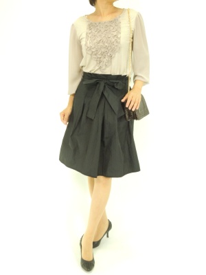 サラリと着れて秋らしい、夏から秋に向けてのおすすめの甘口コーデ。涼しくなったらジャケットを羽織って!フェミニン度70%、エレガンス度30%。