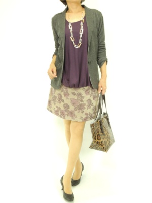 少しきちんと感を出したい時はジャージジャケットが便利。ゴブランスカートでトレンドは押させつつもシックにまとまります!スタイリッシュ度80%、エレガンス度20%。
