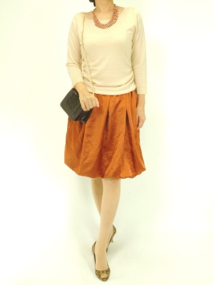 ニットとスカートをコーディネートしたようなドッキングワンピ。ニットはシンプルなのでデコラなアクセが良く映えます!エレガンス度60%、フェミニン度40%。エレガンス度60%、フェミニン度40%。