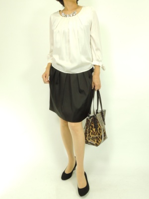 光沢のあるアイテムで作るエレガントなお出かけスタイル。今年はボリュームアクセで仕上げたい!エレガンス度90%、スタイリッシュ度10%。