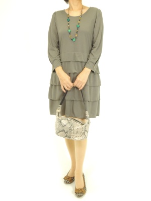 カジュアルに着こなしがちなカットソーワンピも小物次第でお出かけ仕様に!フェミニン度80%、エレガンス度20%。
