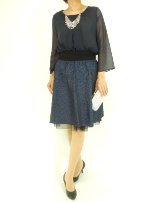 この秋大注目のネイビーコーデ。異素材MIXとボリュームアクセでメリハリをつけて!エレガンス度70%、スタイリッシュ度30%。