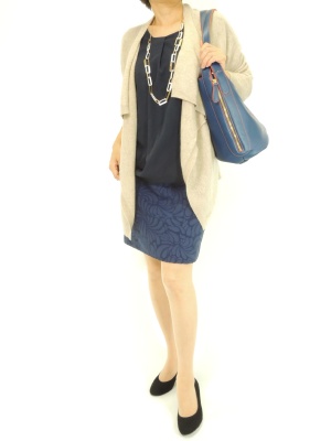 ロングカーデはパンツに合わせがちですが、タイトスカートだと女らしくシックな印象になります!フェミニン度60%、スタイリッシュ度40%。