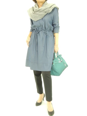 ブラウジングするシャツワンピはテーパードパンツとのレイヤードがカッコいい。パンツは細身を選んで!スタイリッシュ度80%、アクティブ度20%。