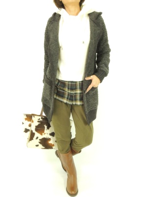 モコモココートとゆるパンツでリラックスした休日スタイルに。いろんな素材をMIXさせるのがさりげなくお洒落に見せるポイントです!アクティブ度100%。