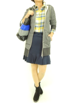パーカはデイリーカジュアルの必需品です。デニムを合わせて勿論可愛いのですが、たまにはこんなスカートでフェミニンに着こなすのもおススメです!アクティブ度80%、フェミニン度20%。