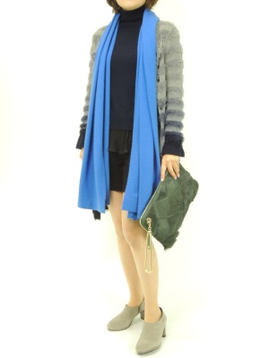 ショートパンツにはロングカーデを合わせると大人らしいスタイルに!スタイリッシュ度80%、フェミニン度20%。