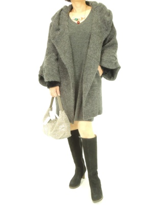 ボリューム感のあるコートはシンプルワンピでサラリと着こなして!エレガンス度60%、スタイリッシュ度40%。
