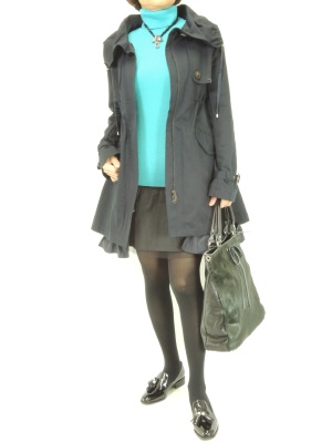裾のフリルが可愛いコートやふんわりスカートの甘口アイテムは寒色系でまとめると甘くなりすぎずお洒落に決まります!フェミニン度60%、スタイリッシュ度40%。