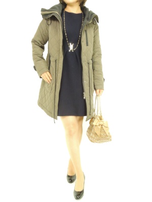 カジュアルなイメージのキルティングコートもウエストを絞るデザインなら女らしく着こなせます!エレガンス度60%、スタイリッシュ度40%。