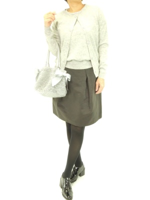ツインニットとふんわりスカートの甘口お出かけスタイル。エナメルのマニッシュな靴で少しスパイスを加えて!エレガンス度50%、フェミニン度50%。