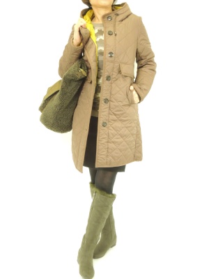 デイリーに大活躍するキルティングコート。流行のペンシルスカートを合わせてみたら大人らしいカジュアルになりました!アクティブ度80%、フェミニン度20%。