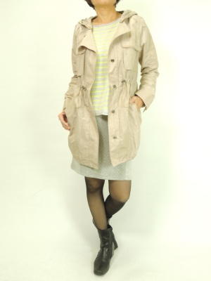 軽いスプリングコートはお出かけの必需品です。今回はインナーにボーダーを合わせたいので、コート付属のジレは取り外しています!アクティブ度100%。