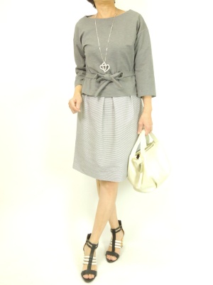 上下をコーディネートしたようなワンピースがあれば急なお出かけにも困りません!フェミニン度80%、エレガンス度20%。