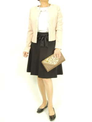 ノーカラージャケットとフレアースカートの組み合わせはやっぱり上品で素敵です!エレガンス度70%、フェミニン度30%。