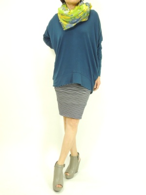 ゆるシルエットのカットソーにはスキニーパンツもよく合いますが、この春はペンシルスカートにもトライしてみたい!スタイリッシュ度80%、アクティブ度20%。