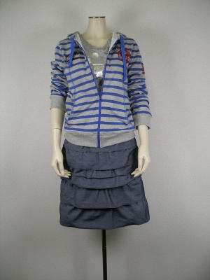 ボーダー+パーカ。この春のアイテムには欠かせません。あえてフェミニンなスカートで合わせてみました!アクティブ度60%、フェミニン度40%。