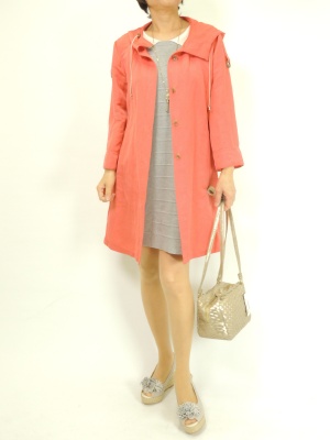 お出かけには春らしい綺麗な色のコートを着たい気分です。衿付きワンピならコートを脱いでも可愛い!フェミニン度90%、アクティブ度10%。