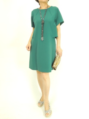 個性的なデザインのワンピースは重ね着せず、一枚で着こなしたい。存在感のあるアクセをポイントに!エレガンス度70%、スタイリッシュ度30%。