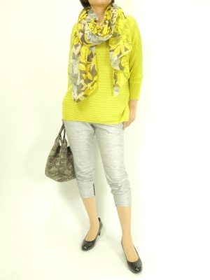 ゆるニットには裾をたくし上げたパンツを合わせると女らしくてカッコよく決まります!スタイリッシュ度80%、アクティブ度20%。