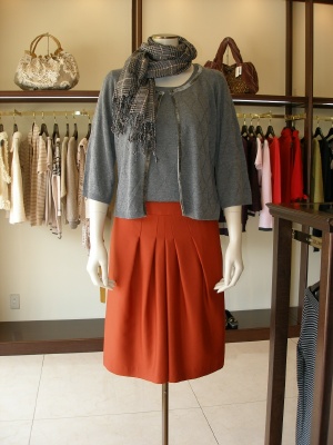 正統派コンサバスタイル。グレンチェックのストールをコンパクトに巻くのがポイント!フェミニン度100%。