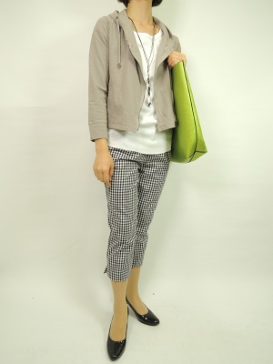 ギンガムチェックは今年の顔。短丈のトップスとのバランスが良いですね!スタイリッシュ度80%、アクティブ度20%。
