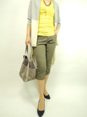 休日ファッションはラフなパンツが一番。ざっくりカーデも変形ヘムは大人のカジュアルにはピッタリのアイテムです!アクティブ度70%、スタイリッシュ度30%。