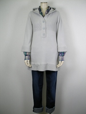 リラックスしたAラインのニットのインには、着心地の良いチュニックシャツを。こんなナチュラルコーディネートでお花見はいかが!アクティブ度100%。