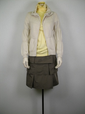 ベージュとイエローで優しく春らしい色合わせ。ふんわりしたカーディガンは春中大活躍しますよ!フェミニン度100%。