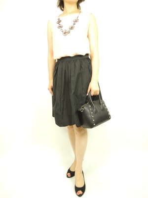 ギャザースカートにオーバーブラウスで組み合わせると切り替えワンピースの様にお洒落に着こなせます!エレガンス度70%、フェミニン度30%。
