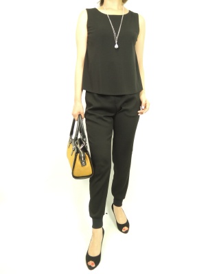 スエットパンツ型はこの秋の流行。トップスの内側だけインするとオールインワンの様に着こなせます!スタイリッシュ度90%、エレガンス度10%。