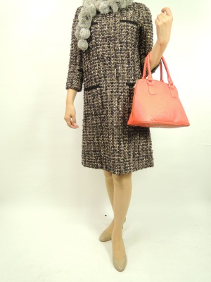 ツイード素材のワンピースはシックながらも華やかさもあり小物次第で表情が変わります!エレガンス度80%、スタイリッシュ度20%。