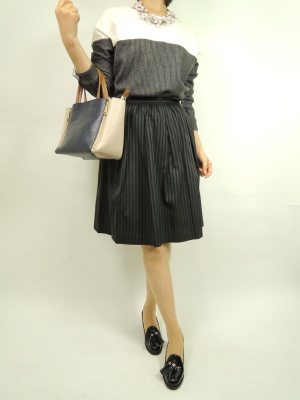 トップスはスカートインすることでふんわり感が増す。同色のグラデーションがオシャレ度を上げてくれる!フェミニン度70%、スタイリッシュ度30%。