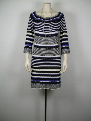 ボーダーのニットワンピも、こんなデザインなら大人っぽい。動きやすく、女らしいのでホームパーティにもいいですね!エレガンス度60%、スタイリッシュ度40%。