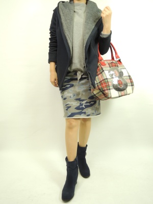 スウェット地の組み合わせは大人の休日ファッションに欠かせないアイテム。全体をネイビー色でまとめてみました!アクティブ度100%。