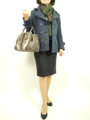 タイトスカートにピーコート。シンプルな大人のスポーティカジュアルコーデ。ネイビー系でまとめるとより一層大人っぽくまとまります!スタイリッシュ度80%、アクティブ度20%。
