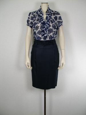 ブラウスとタイトスカートで知的に。でもほんのり透ける上質シルクが女っぷりも上げてくれますよ!スタイリッシュ度90%、エレガンス度10%。