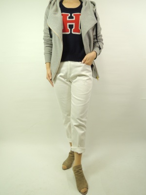 ロールアップしたデニムにざっくりパーカでカジュアルな休日ファッション!アクティブ度100%。