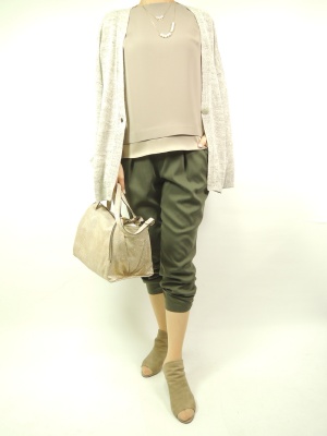| 落ち感のある素材でまとめたコーデは大人の女性ならではの着こなし。足元の抜け感がより女度をUPさせる!スタイリッシュ度80%、フェミニン度20%。 |