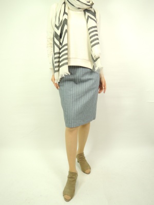 Vネックのシンプルなカットソーに見えるが裾にはポイントになるチュールが。タイトスカートで組み合わせるとスッキリした着こなしに!アクティブ度60%、フェミニン度40%。