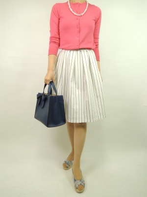春を感じる色を着るだけで気分も上昇しますね。色がはっきりしているので3色までに抑えるとバランスが良いですね!フェミニン度90%、エレガンス度10%。