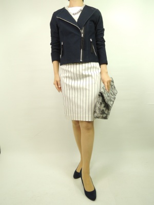 スタイリッシュに決めるにはライダースブルゾンにタイトスカートがお洒落に決まる。インはーでちょっと遊び心を持って!スタイリッシュ度100%。