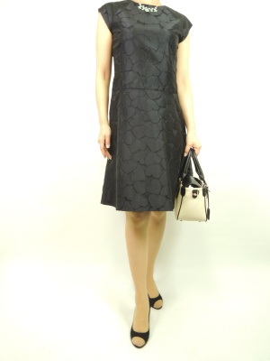 ネイビーのシャンタン素材のワンピースはAラインでとてもシルエットが綺麗。一枚でさらっと着こなしたい!エレガンス度80%、フェミニン度20%。