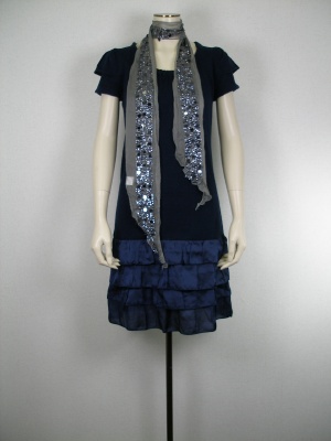 裾とティアードはポリエステルと綿混を使用しているので、裾にハリが出る上品なワンピースです。ネイビーも今年流行りの色で爽やかな装いになりますね!エレガンス度80%、フェミニン度20%。